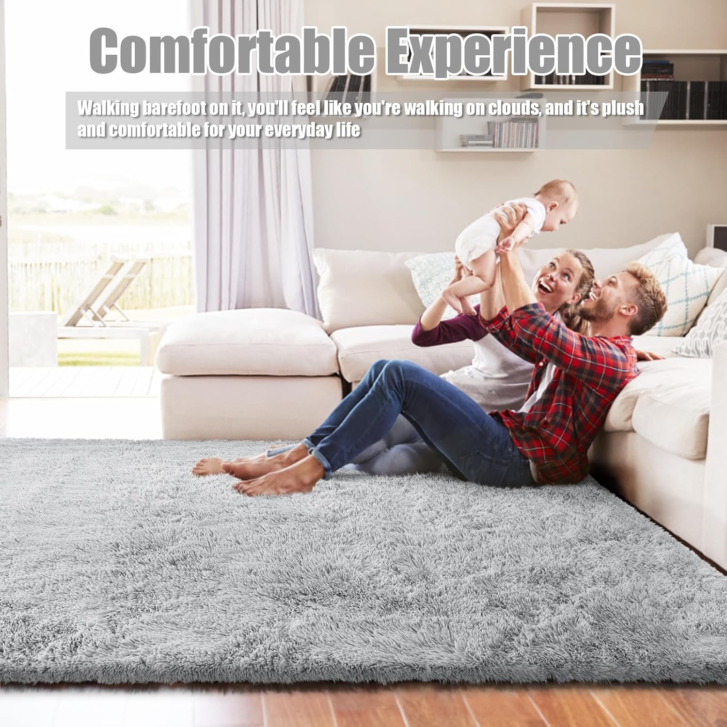 【Multiple Size and Wide Versatility】Our grey furry rugs for bedroom are suitable all year round. We have a wide range of carpet sizes and colors that provide excellent comfor.Such as living room,bedroom,kids room,learning room,nursery and so on. Bedroom rug is designed in style