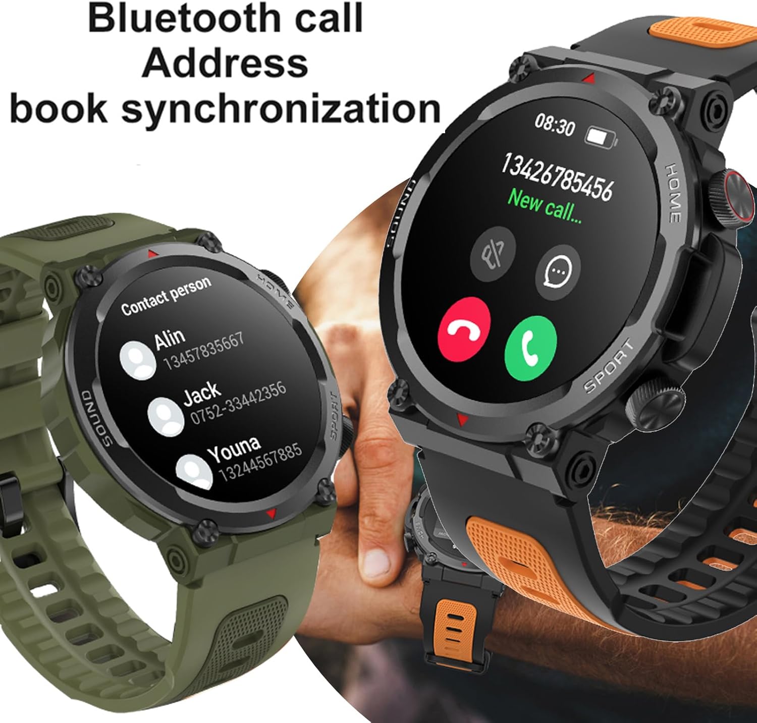 【Military Smart Watch,Bluetooth Call】Make,answer,reject calls,Bluetooth calls,high-quality speakers combined with high-end acoustic technology AM sound quality,make calls clearer.Communication contacts,which is clear and more efficient,freeing hands and not missing important messages.
