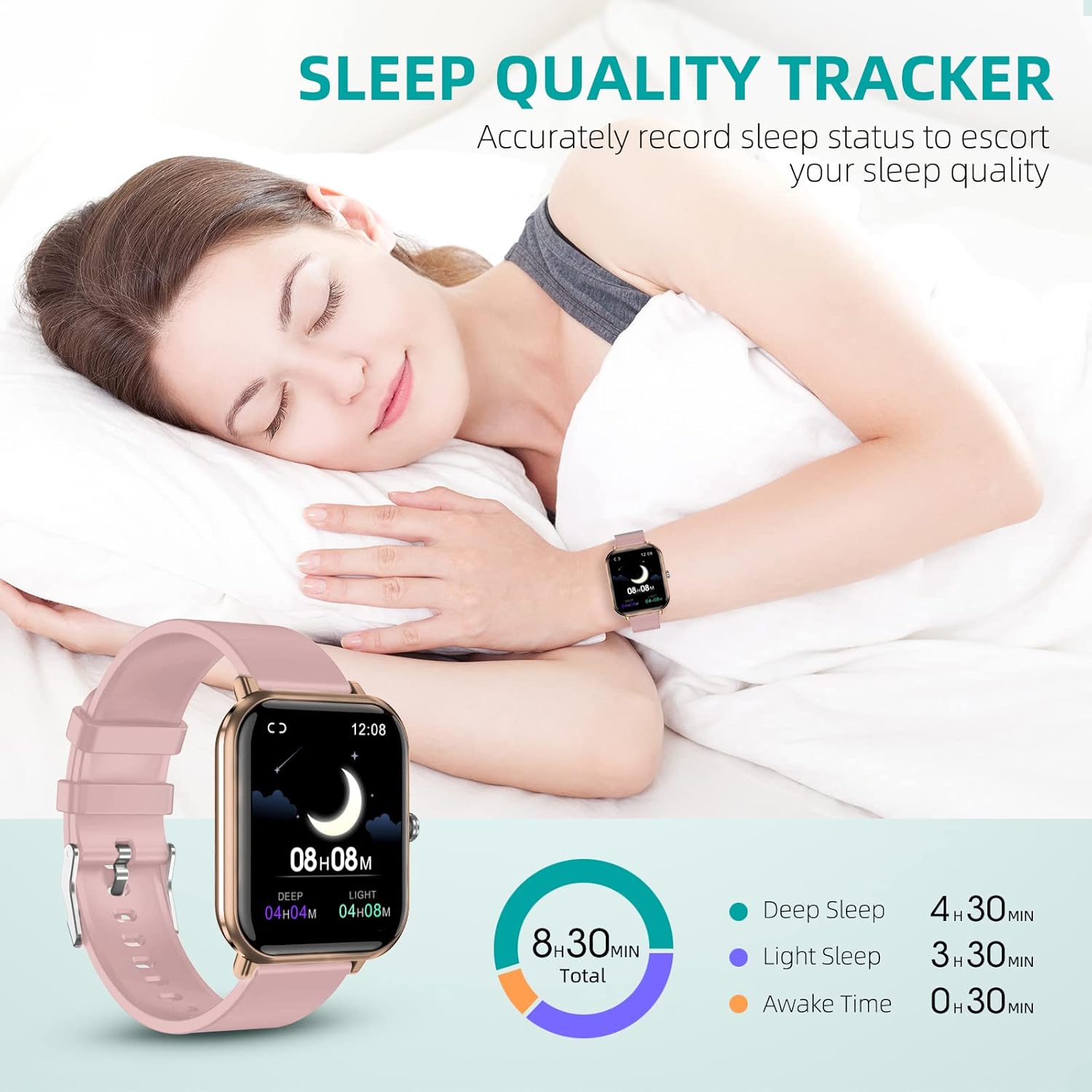 【Upgraded Smart Watch for Women】: The smart watch fitness tracker features a pink band and mental frame. The Q9 PRO smartwatch can provide all-around body tracking, allowing you to accurately track 24-hour body data, temperature monitor and stress levels. Automatically monitor your sleep (Deep sleep, Light sleep, Awake time)to tell you how long you sleep during the night.