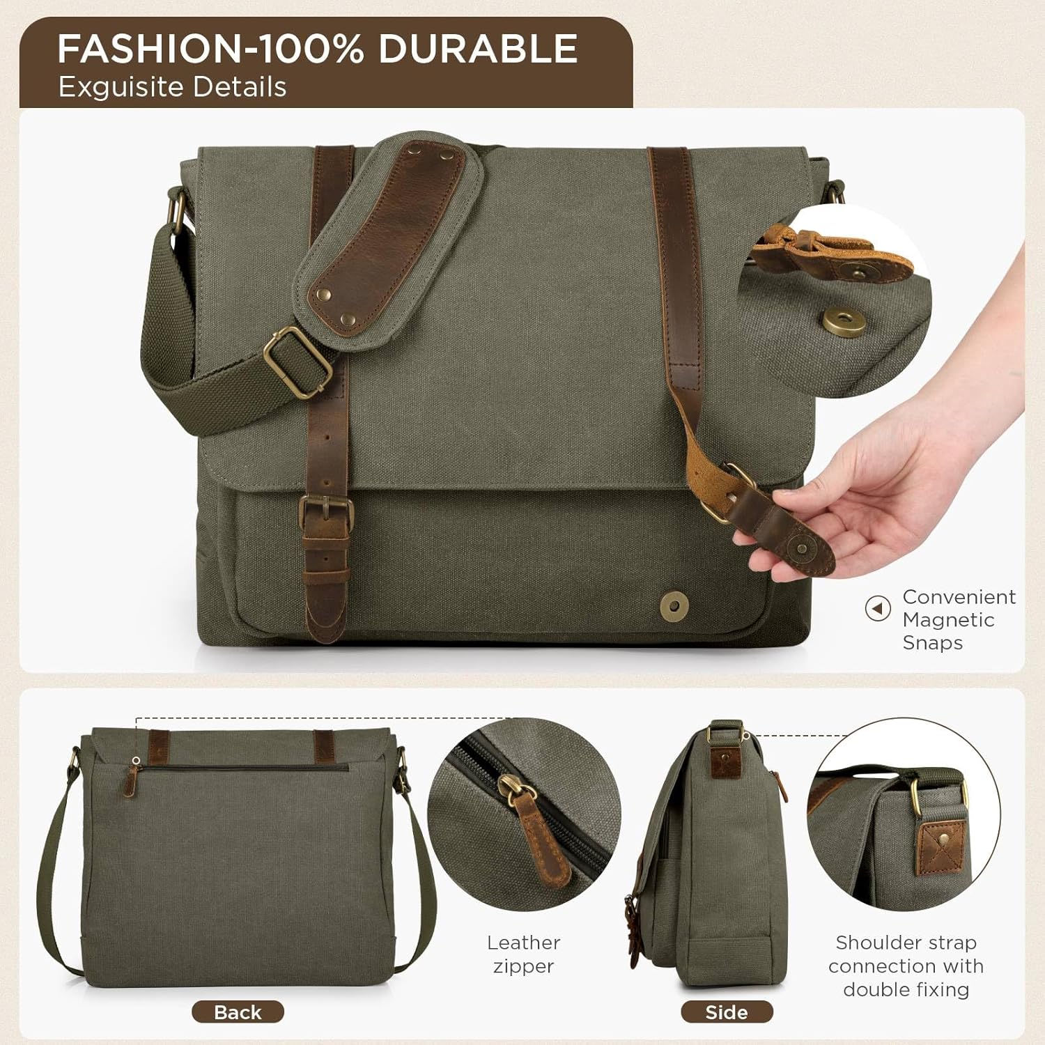 Comfortable Shoulder Strap: The wide shoulder strap of the canvas messenger bag can be adjusted to the most suitable length. The adjustable padded shoulder strap also helps relieve your fatigue and reduce shoulder pressure during use