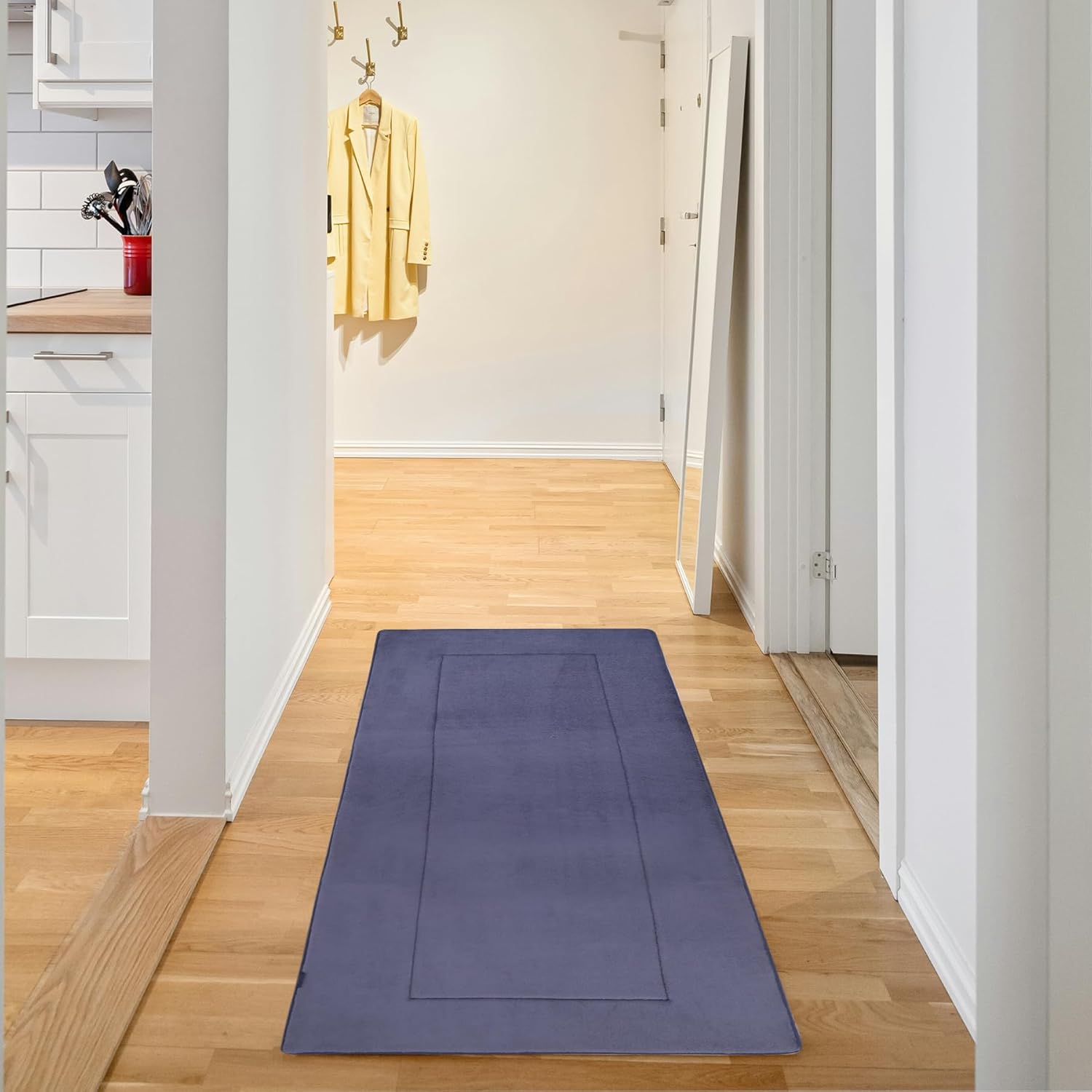 Super Water Absorption: The soft coral fleece microfiber layer of the memory foam runner rug can absorb as much water as possible from your wet feet.It can absorb an impressive amount of water, leaving your feet dry and comforta