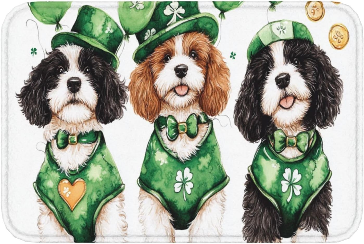 St. Patrick’s Day Dog Indoor Home Non Slip Mat,Mat for Door,Getting in The Holiday Spirit,Washable Easy to Clean,Absorbent Dirt Resist,for Living Room,Kitchen,Study Decor 16×24 inch