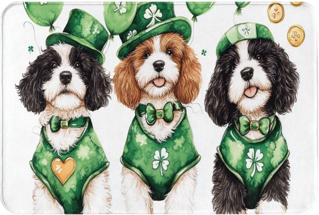 St. Patrick’s Day Dog Indoor Home Non Slip Mat,Mat for Door,Getting in The Holiday Spirit,Washable Easy to Clean,Absorbent Dirt Resist,for Living Room,Kitchen,Study Decor 16×24 inch