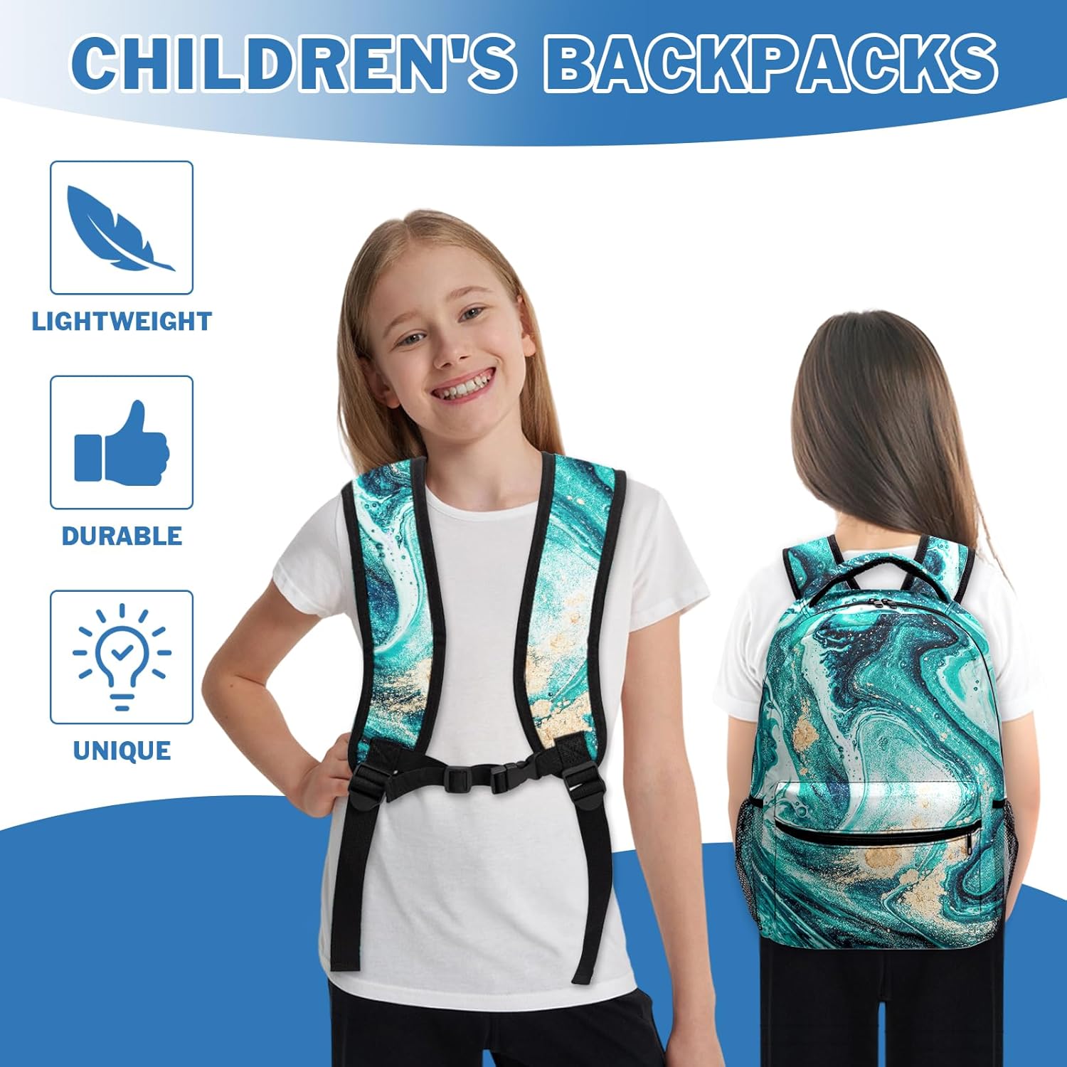 [Multi Purpose]: This teal green marble backpacks for girls is suitable for various occasions and meets the various needs of children; It is a good choice for going to school, traveling, camping, exercising, and daily outings. It is a multifunctional backpack for children aged 3-16.