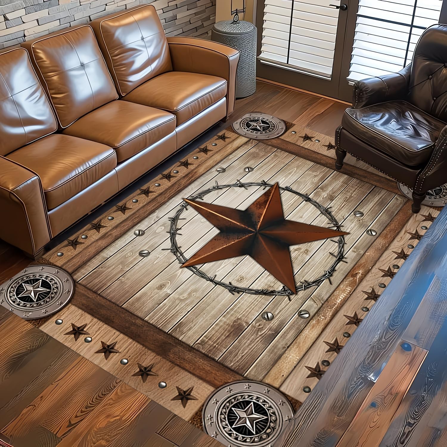 HOUSE DECOR: Texas-themed homes carpet is perfect for a texas house and country cabin, and the vintage style rug showcases a beautiful star pattern, making it a perfect choice for cowboy lovers