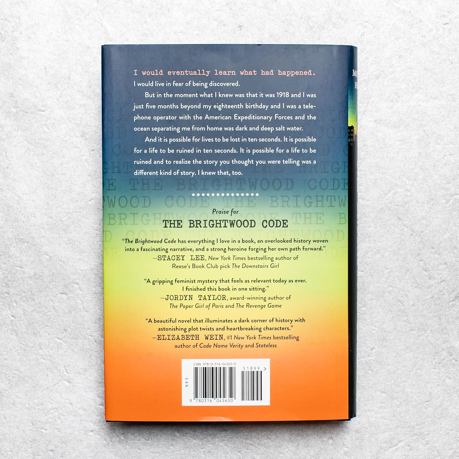 Now, Edda is back in Washington, DC, working as an American Bell Telephone operator, the picture of respectability. But when her shift ends, Edda is barely hanging on, desperate to forget the circumstances that cut her time overseas short. When she receives a panicked phone call from someone who utters the fateful code word “Brightwood,” Edda has no choice but to confront her past. With precious few clues and help only from Theo, a young man bearing his own WWI scars, Edda races to uncover what secrets may have followed her across the ocean.