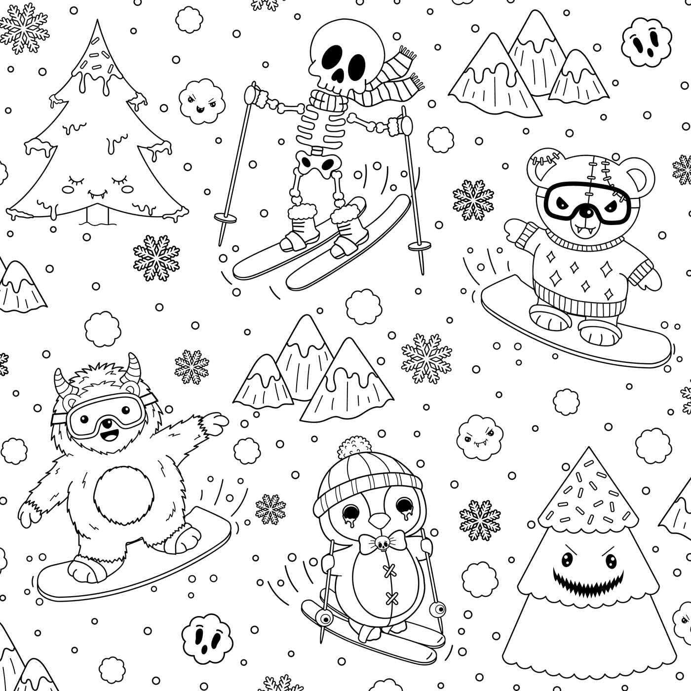 Celebrate with springtime cemetery scenes, ice cream cones with skulls and crossbones, and snowmen covered in spiders with the perfect mash-up coloring book that’s sure to please even the most tortured souls.