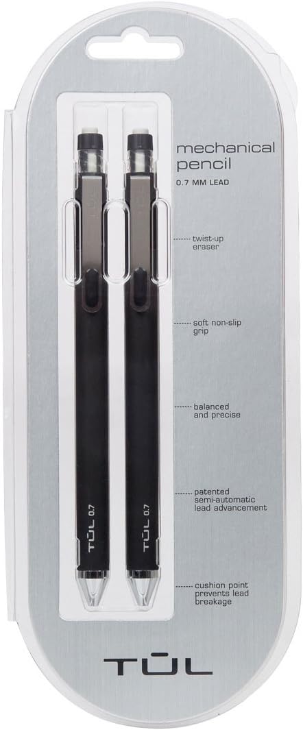 This bundle consists of a 2-pack of 0.7mm TUL mechanical pencils, a TUL eraser 3-pack refill, and 1 plastic tube of 30 Pentel Super Hi-Polymer Lead Refills, 0.7 mm, HB hardness (the same as a #2 pencil). The pencils include clips for easy and convenient storage in a shirt pocket, handbag, briefcase or backpack. These high-quality mechanical pencils receive great reviews for a reason, like “best mechanical pencil I’ve ever used.”