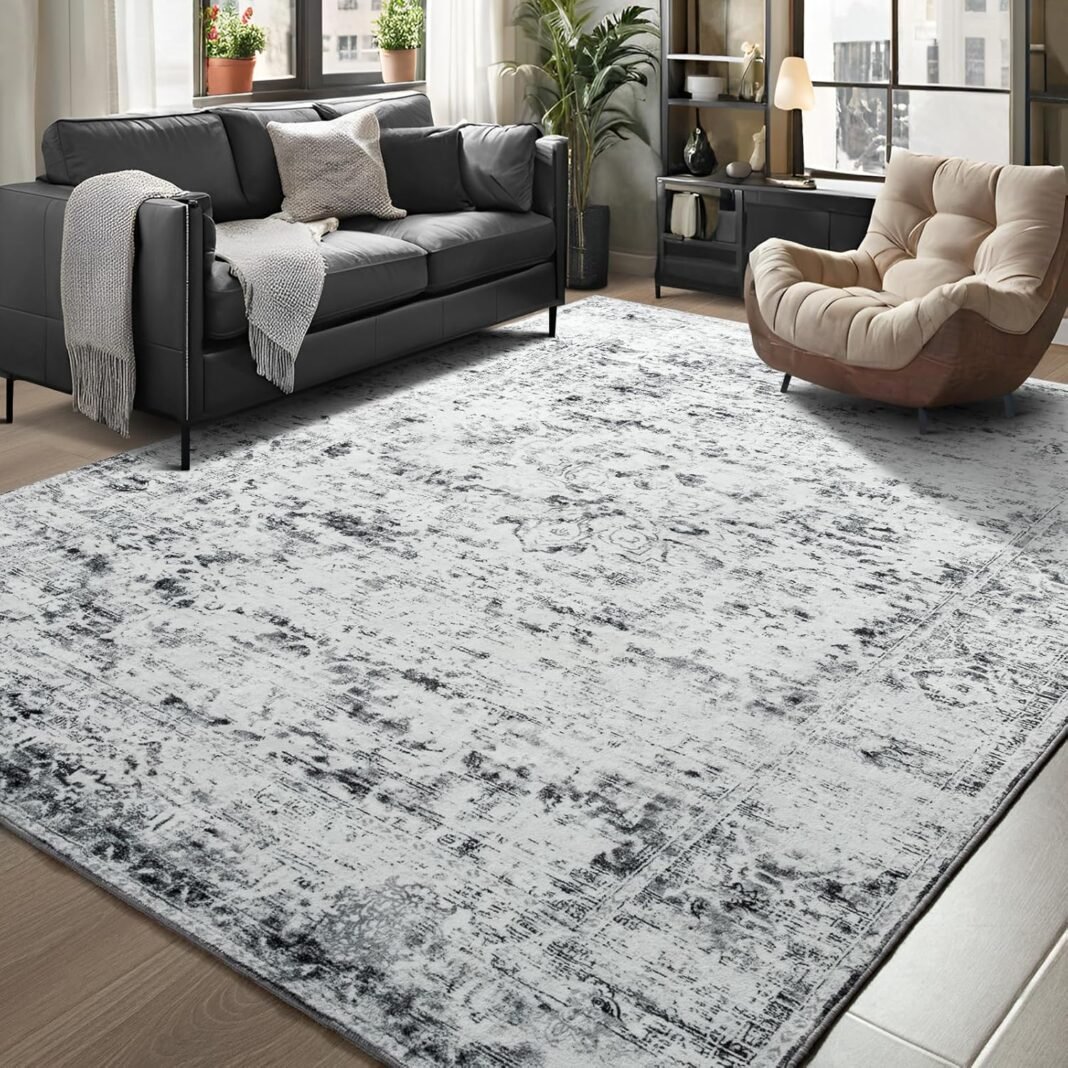Vintage Boho Abstract 8x10 Grey Black Rug for Living Room Bed Room Children Kids Nursery Play RoomVintage Boho Abstract 8x10 Grey Black Rug for Living Room Bed Room Children Kids Nursery Play Room