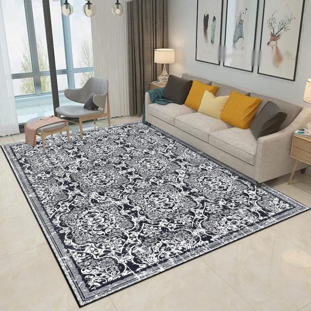 Farmhouse Living Room Rugs: The laundry room carpet is made of high quality 0.12 inch imitation cashmere fabric materials. It is not easy to shed lints and it is very soft and comfortable. The washable rug measures 5 X 7 feet, which can better meet your needs for placing it. The fully machine washable rug is suitable for all types of large and small living rooms