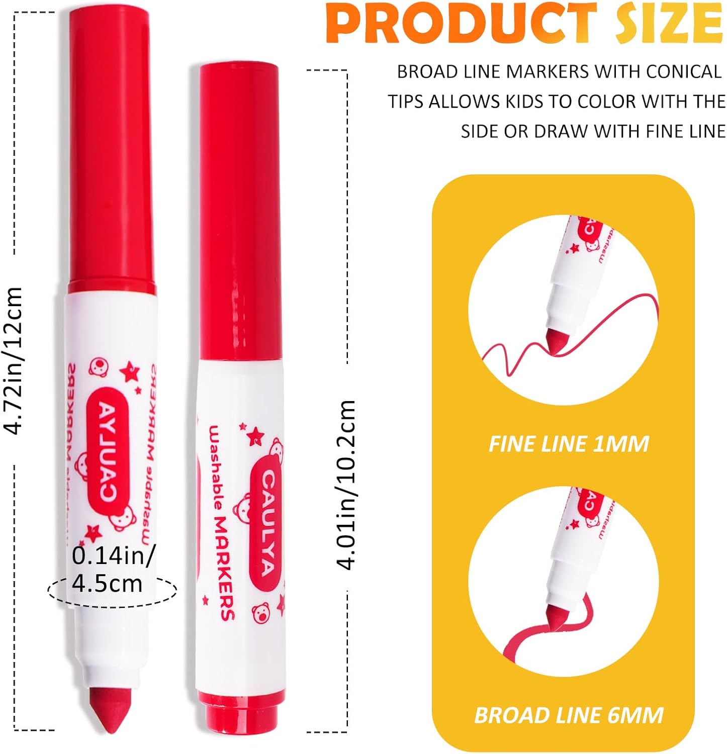 [Broad & Line Markers] – Markers with conical tips allows kids to color with the side or draw with fine line. Ideal class classroom set markers. Excellent for school projects, homework, and crafts, perfect for teachers as school supplies.