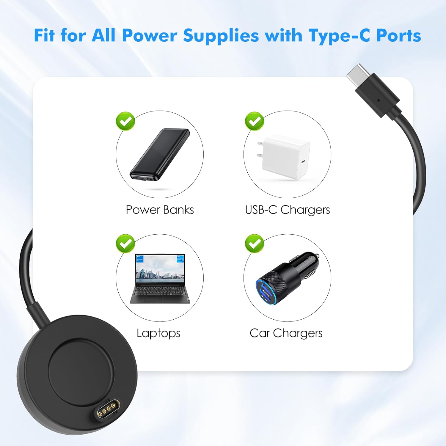 EFFORTLESS USB-C CHARGING – Simply place your watch near the dock, and the strong magnets will securely align it for charging. Compatible with any USB-C port for fast and efficient power delivery.
