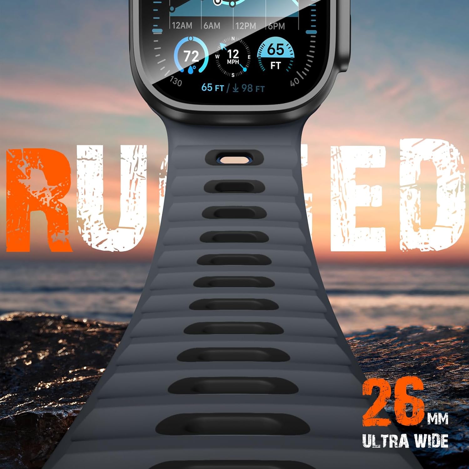 【Soft Touch, Daily Comfort】Come with top-grade, flexible silicone rubber material, so it’s more comfortable to wear, offering long-lasting softness and durability and easy to slip on and off your wrist, ensures your Ultra Watch feels like a natural extension all day long.