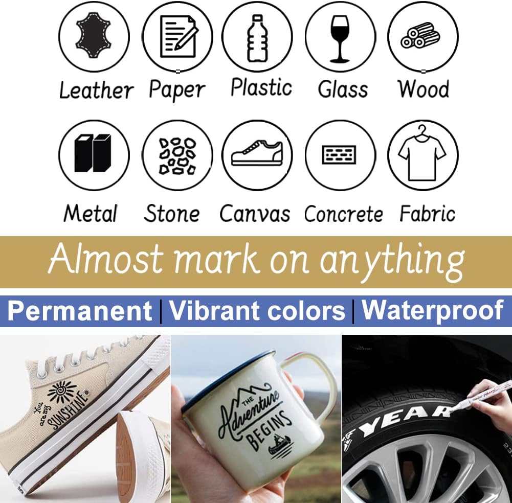 Versatile: These permanent paint pens are the best choice to work on multiple surfaces. You can use on rock painting, ceramic, wood, leather, plastic, fabric, canvas, stone, glass, metal, chalkboard craft supplies, etc
