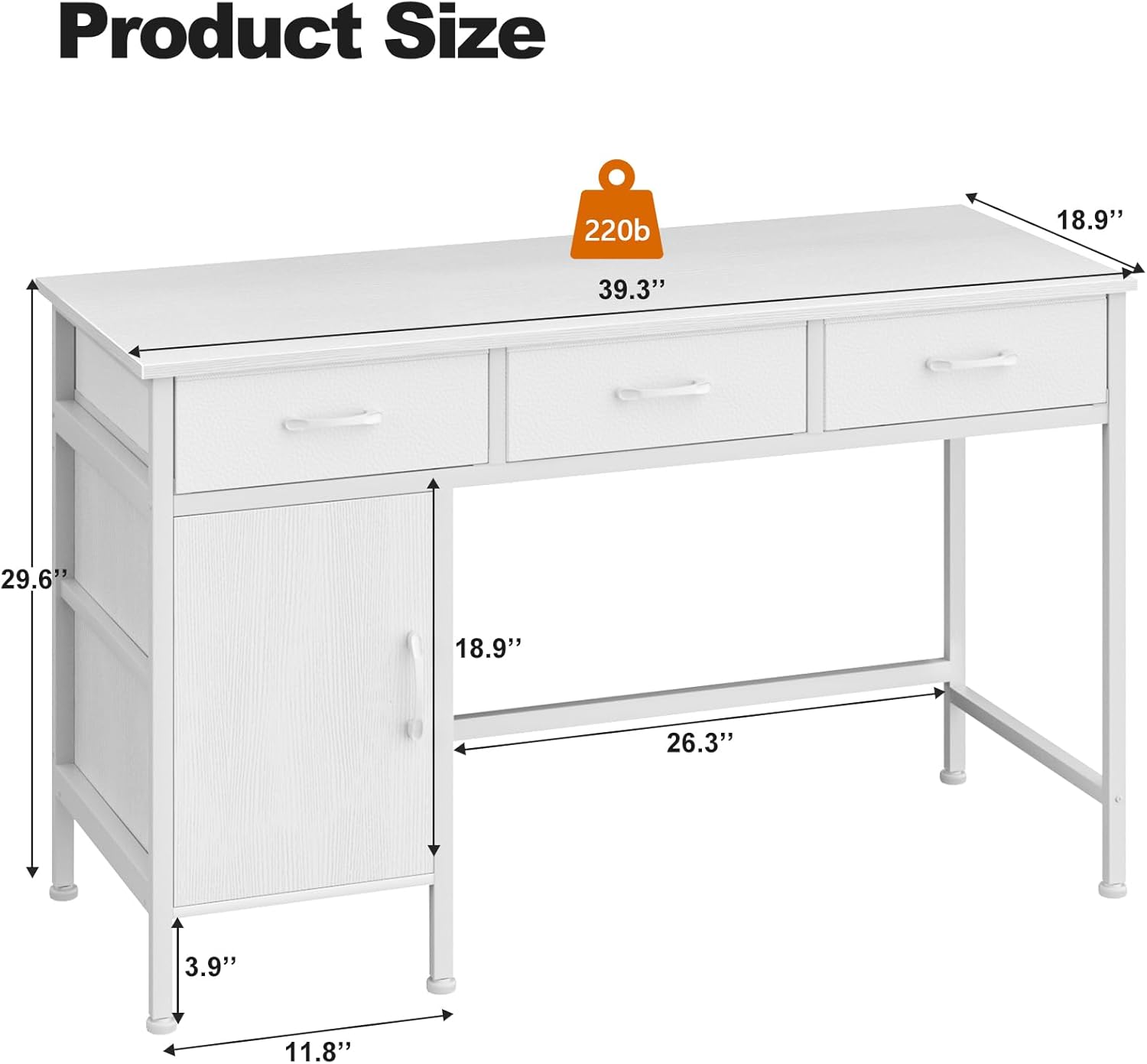 White Desk with Storage Cabinet and 3 Fabric Drawers