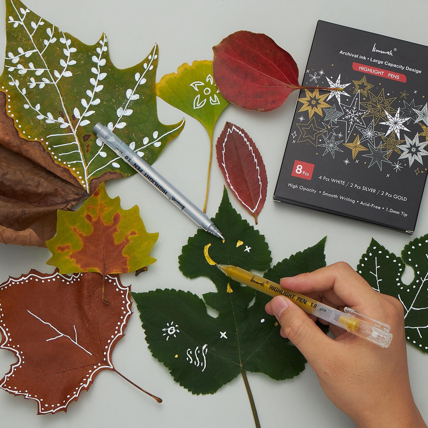 White Gold and Silver Gel Pen Set, 1mm Extra Fine Point Pens Gel Ink Pens Opaque Archival Ink Pens for Black Paper Drawing, Sketching,Card Making, Illustration, Bullet Journaling, 8 Pack