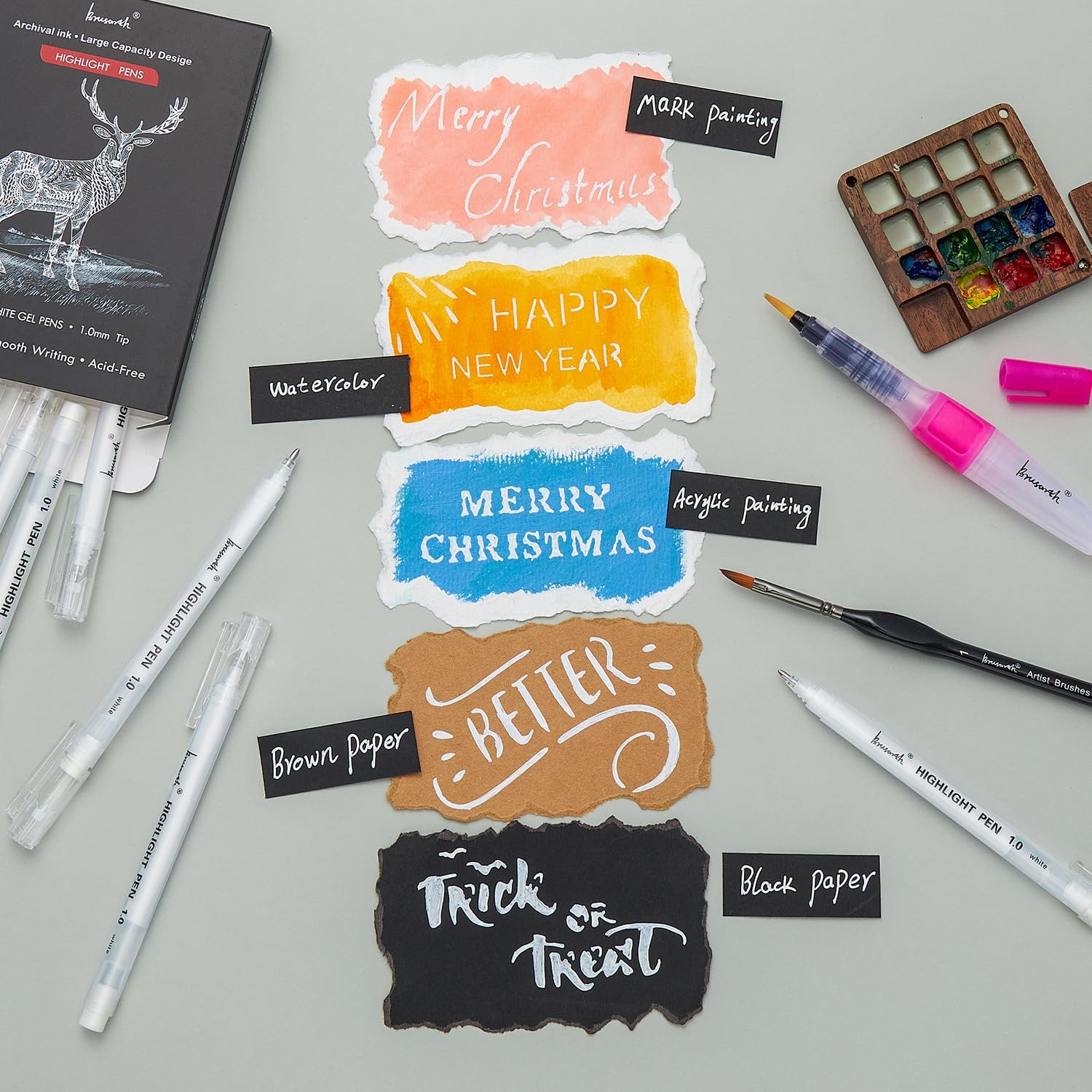PREMIUM QUALITY: Water-Based Gel Ink Pens, Fast drying, Acid free and Non toxic; Blends well with other media such as markers, watercolors, pens and pencils; You can use it for the white high-light part of the mark pen works, like white light,stars