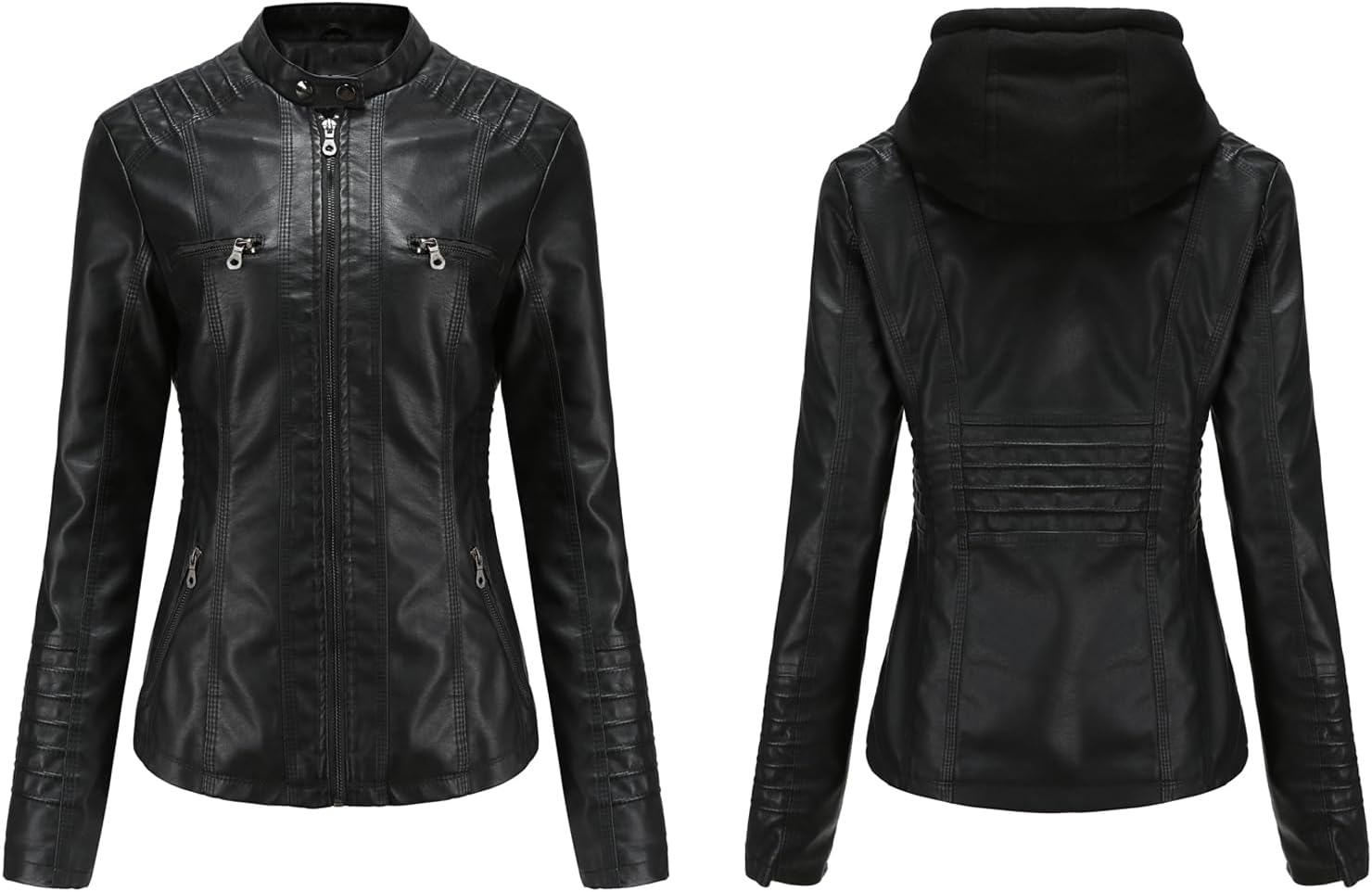Women’s Trendy Faux Leather Jacket Moto Short Jacket Fashion PU Jacket Coat
