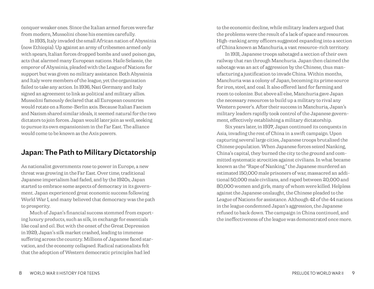 Key WWII battles―Read through detailed accounts of the most important battles, the moments that decided their outcomes, and how these results shaped the war.Critical thinking―An exciting narrative engages readers while also providing the information they need to draw their own conclusions about the impact of WWII.Closer looks―World War II History for Teens helps readers go even deeper with special features on military technology, how many of the war’s key decisions were made, and more.