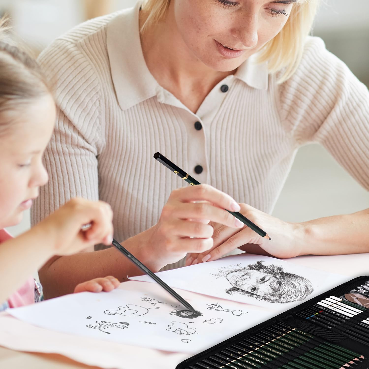 ✏️【Portable Storage Design】All sketching kit tools are packed in a portable canvas bag, convenient for you to sketch and draw anytime and anywhere. All drawing set tools are well organized in the canvas bag, you can always find the sketching pencils you need without clutter.