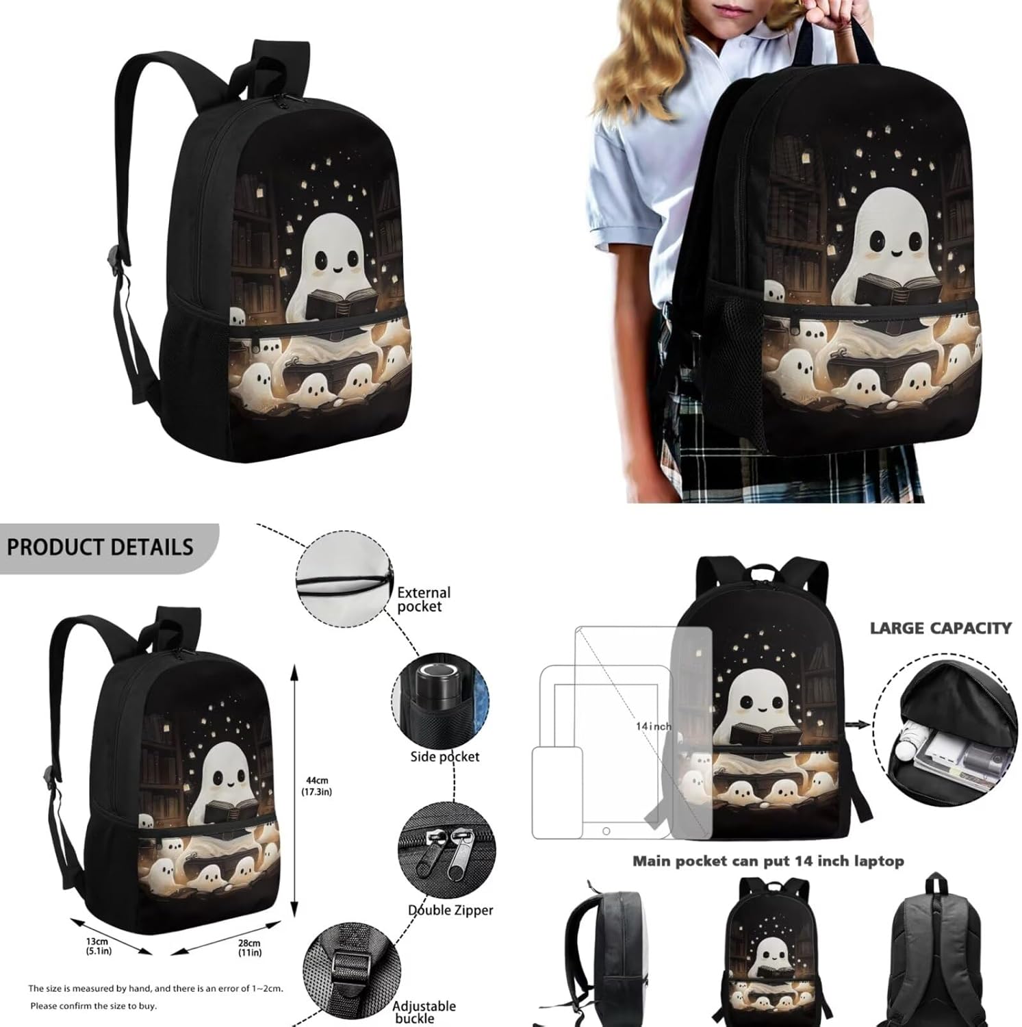 Large Capacity School Bag:The Kids School Bagckpack has a large-capacity main pocket, multiple zipper pockets and two elastic side pockets, which can accommodate a large number of books, 14-inch notebook computers, Ipad, pencil cases, water cups and other daily necessities. It is a good helper for daily travel