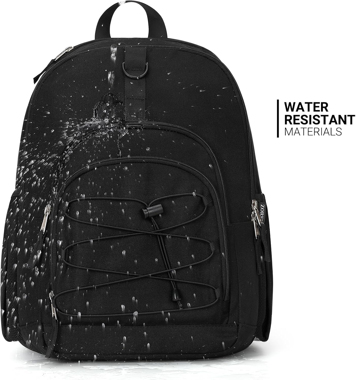ZORFIN Black Backpack for School Travel: Bookbag for Girls Boys – Laptop Backpack with Multiple Compartments